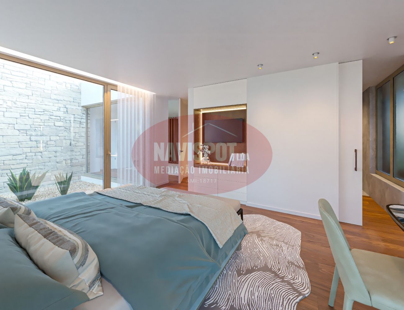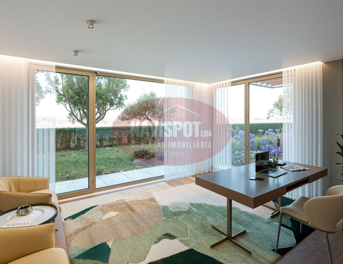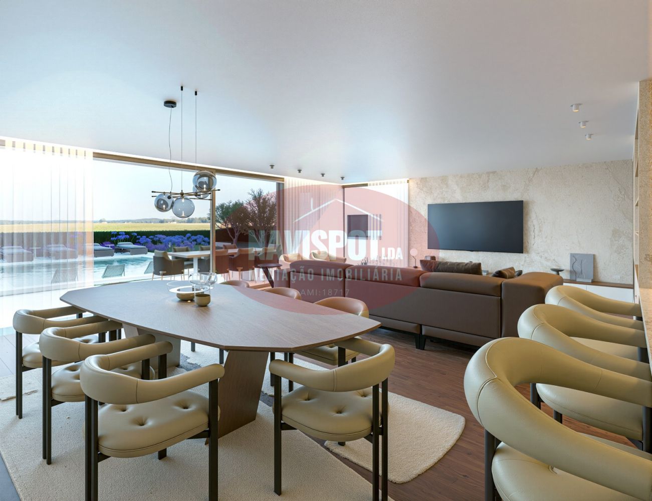 Moradia contemporânea de arquitetura minimalista, inserida num lote privado de 2.000 m², com vista direta para o campo de golfe, localizada na prestigiada comunidade de Vila Nova de Santo Estêvão — um dos enclaves residenciais de luxo mais reservados e consistentes em valorização na região de Lisboa, a menos de 60 minutos da capital. Com uma área de construção de aproximadamente 500 m², o projeto distingue-se pela qualidade arquitetónica, linhas depuradas e materiais duradouros, nomeadamente amplos vãos envidraçados do chão ao teto, betão aparente e elementos em madeira, assegurando uma forte ligação entre os espaços interiores e o enquadramento natural envolvente. A moradia distribui-se por quatro suites de dimensões generosas, um escritório adicional, amplas áreas sociais em open space, múltiplos terraços, zona lounge e piscina, garantindo elevados padrões de conforto, privacidade e eficiência espacial — fatores determinantes para preservação de valor no longo prazo. Inserida numa zona com claro potencial de valorização, a propriedade beneficia da futura proximidade ao novo Aeroporto Luís de Camões, em Alcochete, bem como da acessibilidade ao Freeport Lisboa Fashion Outlet, reforçando a atratividade da localização tanto para uso próprio como para investimento patrimonial. A urbanização de Vila Nova de Santo Estêvão oferece infraestruturas consolidadas, incluindo lagos naturais, trilhos pedestres, centro equestre e um reconhecido campo de golfe de 18 buracos, num ambiente de baixa densidade construtiva, segurança e elevada qualidade de vida — características particularmente relevantes para investidores de perfil conservador e estratégico. O valor apresentado não inclui mobiliário nem decoração. Existe a possibilidade de entrega totalmente mobilada e decorada conforme projeto, mediante investimento adicional, permitindo uma solução “chave na mão”. Uma oportunidade diferenciada para aquisição de um ativo imobiliário exclusivo, com forte potencial de valorização e resiliência a médio e longo prazo, num dos contextos naturais mais privilegiados da região. Prazo estimado de entrega: 18 meses.